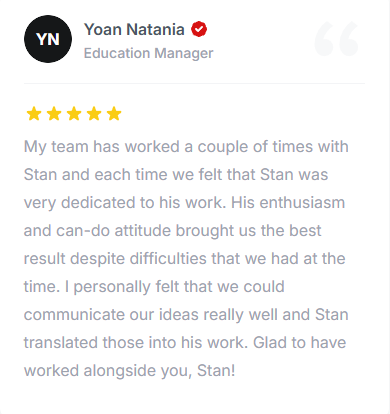 Workshop ini merangkum cara kerja yang saya pakai yang ngasih jalan buat freelancer naik kelas, dapet proyek bernilai lebih tinggi, dan punya bisnis yang stabil.”