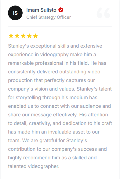 Hai, saya Stan, founder Belajar Video Online dan Paulaco. Saya memulai dari dunia event & EO, lalu pindah total ke corporate video sejak 2017.